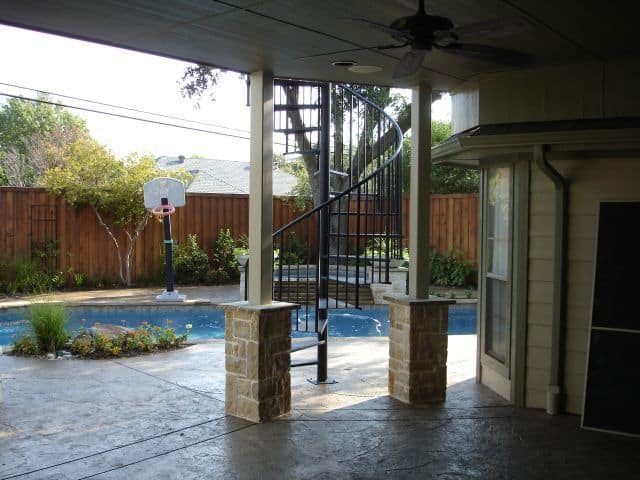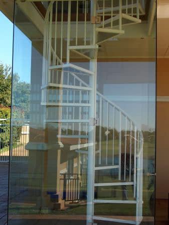 Spiral Stairs lead to 2nd Floor Patio enclosed in glass